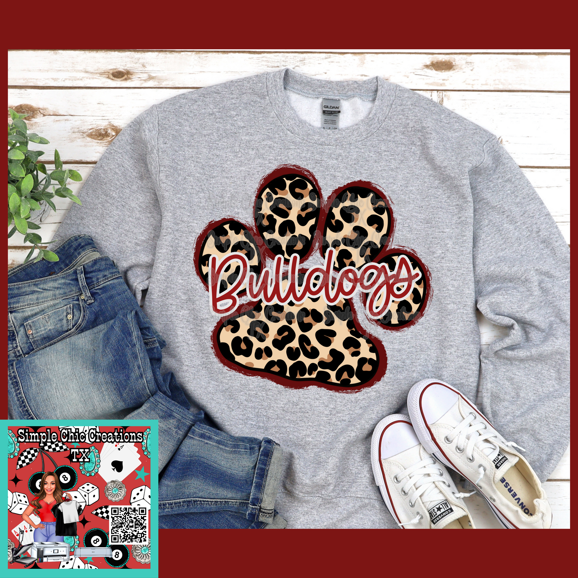 Maroon/leopard Bulldog Paw